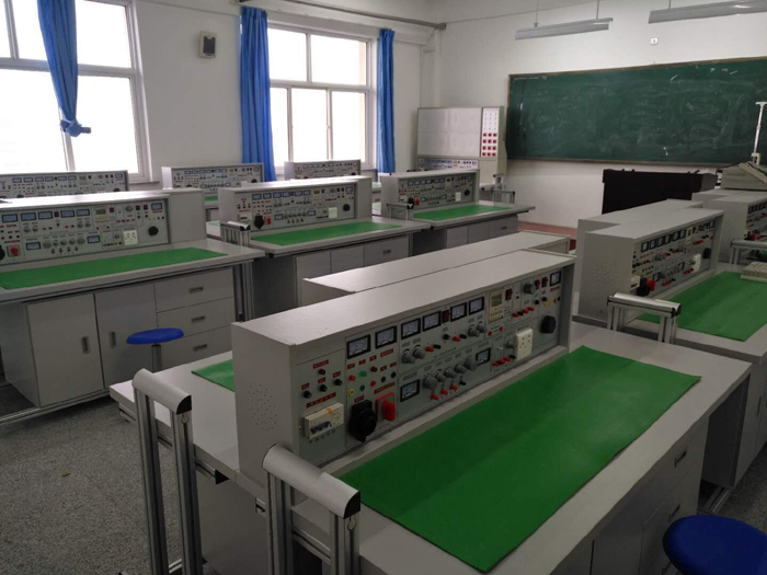 1、实验操作桌:12张,一桌二座,操作桌桌面中央设置九孔通用继电控制实训插板(尺寸:45×70cm),继电控制实训根据电路要求插上电气元件,布线实验。元器件已装在特制元件盒上,实验时插在通用底板上就能连续实训,方便、灵活。每张操作桌配有一块胶皮板,保护插板和桌面(如需要在桌上放置电动机、焊接、放重物等)。