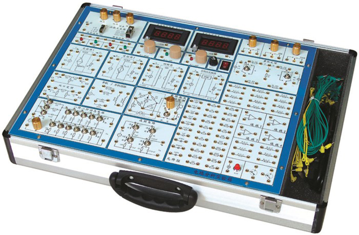 电路分析实验箱主要是进行电工学中的有关电路分析理论的实验论证,属弱电类实验。它采用模块式结构,各模块间相互独立,通过元件区不同元件组合,可组成多种测试电路,实验板正面印有电路图,反面装有器件,各实验电路中需测试的点均装有测试孔,使用方便,接触可靠,而且寿命长、效率高,适用于进行各种电路的实验研究,可满足各类高、中等院校及职业技术类院校的电工原理、电路分析等课程实验教学的需要。