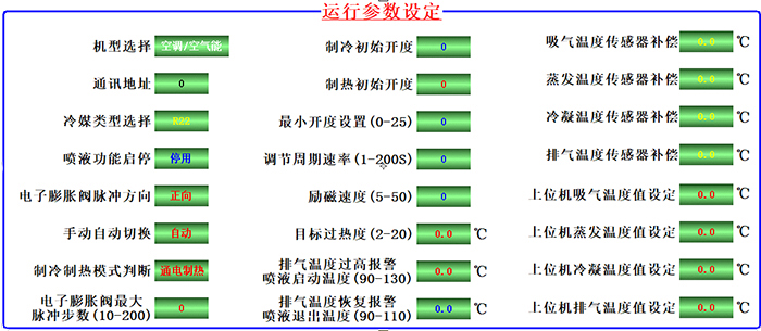 动画模式:触摸屏或软件连接模式下:可显示压缩机排气温度、吸气温度、冷凝温度、蒸发温度,可根据温度实时调节机组过冷度。过热度。
