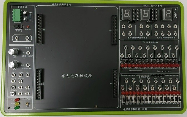 数字电子技术实验箱,设计型(基础型)数字电子技术实验系统是结合数字电路两门课程的实验教学特点,参照现有的教学实验产品,由华北电力大学老师提出设计方案并改进而来的。此款产品借鉴了国内主流产品的设计特点,总结学校在实验课程中发现的问题,有针对性的加以解决。产品本着实验设计型提高学生的动手能力培养、产品牢固型提高产品的皮实验程度不易损坏、操作灵活型产品使用灵活保管方便。