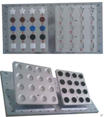 图块搬运模型:多形状物料搬运:机器人通过吸盘夹具依次把一个物料板摆放好的多种形状物料(方形、圆形、五边形、六边形、五角星)拾取搬运到另一个物料板上;圆形物料搬运:机器人通过吸盘夹具依次把一个物料板摆放好的物料拾取搬运到另一个物料板上;物料板可以水平固定到操作台,也可倾斜一点角度安装到操作台;圆形物料有两种,一种金属钱币形物料,一种单面锥形物料;每个物料板对应工位都蚀刻有物料编号;搬运形式可根据要求灵活组合,形式多样,能满足平面、斜面、阵列、指定编号位置、多种物料混合等要求;强化对机器人点位示教技能移训练。
