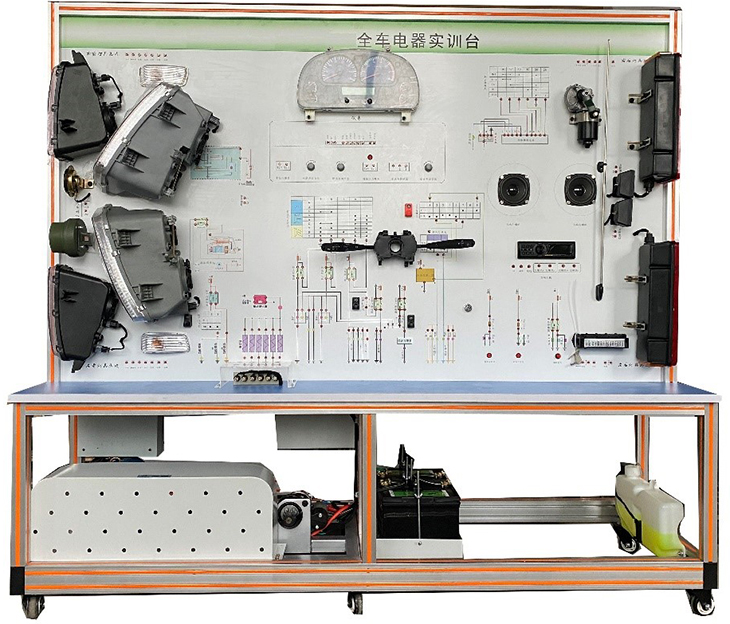 在车身电器基础上,配备各相关辅助控制装置,可如原车一样实际工作。在操纵实训台上的各种电器开关、按纽,真实演示汽车灯光系统、照明系统、仪表系统、雨刮系统、点火系统、起动系统、充电系统、音响系统的工作过程。