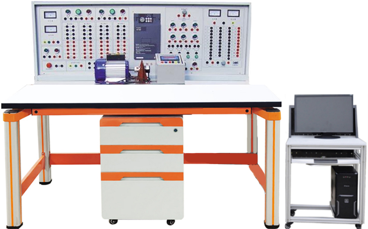 变频调速技术实训装置、驱动技术实训室设备是电气工程系重点专业实训室,变频调速实训装置面向计算机控制、电气自动化、船舶电气技术专业服务。变频器实训台能够模拟实际的工业控制系统。每台变频器装置主要由变频器周围元器件组成,通过实训,学生可以了解变频器的结构、安装及接线的基本知识,学习变频器的参数设定和操作方法、控制回路接线端子的设置、接线及智能化功能。变频器维护等知识。
