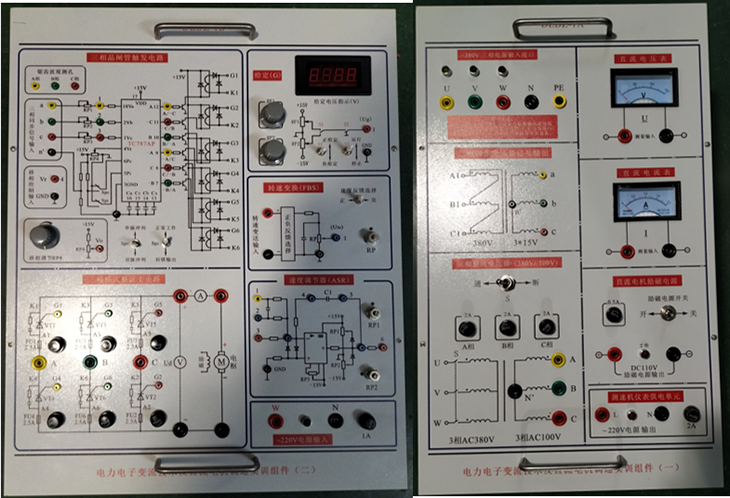 本实训台由实训屏(内置电源)、实训桌、实训储物柜三大部分组成。