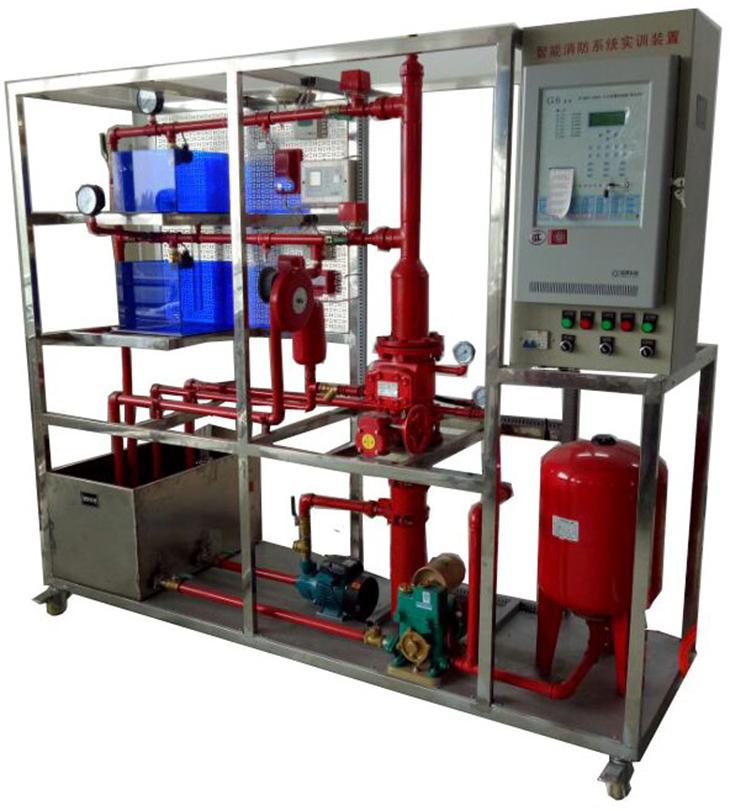 消防联动控制中心及喷淋灭火系统实训装置"依据[建筑消防设计规范]进行标准设计该系统具有消防控制联动中心、消防喷水灭火系统典型结构,能够完成火灾探测,早期探测,火灾报警,现场灭火,同时还能清楚的展示喷淋灭火系统的典型设备构成和系统工作原理,通过该装置的操作学习,学生可以对楼宇中喷水灭火系统的结构有一个全面的了解,喷淋系统与联动动控制中心系统实现联网控制,探测器与联动中心联接实现手自动控制;完全实现现智能化大楼设计,掌握建筑物内部主要灭火设备的应用,熟悉楼宇中湿式报警阀、水流指示器、压力开关等灭火设备的结构和原理,了解消防控制中心的联动操作与设置,可与广播电话中心的控制与操作设置,了解现代建筑消防联动设备系统原理和调试,熟悉消防的控制原理和工作过程。它适用于学习《建筑灭火系统》、《楼宇给排水系统》、《楼宇消防控制系统》等专业课的中职业院校的实训教学。
