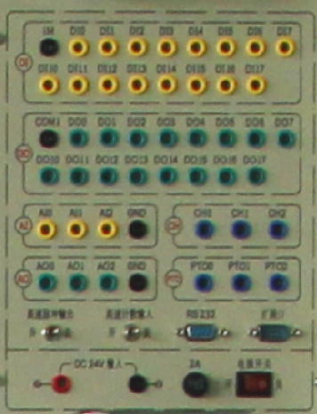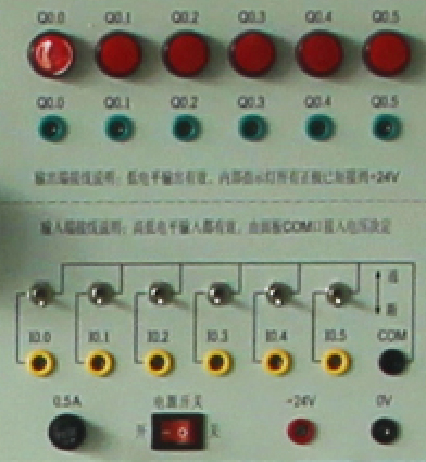 提供6路输入、6路输出等接口,输入、输出端电压可自由切换0V24V,输出端由指示灯的亮灭来指示PLC输出口的状态,面板印有清晰的说明和端口丝印。通过基本指令练习,让学生掌握PLC输入、输出的外围接线和工作原理。