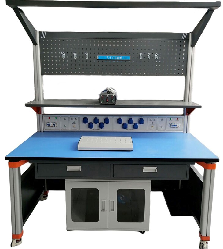 三、功能特点:该设备主要由工作台、实训屏、工具柜、电路实训模块