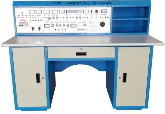 新能源汽车电子电工实训装置,汽车电子创新教学实验系统,配备各种交直流电源、信号源、仪表、电工电子实训模块、交流电路实训模块等。各模块的接口均已引至板上的专用插座,学生可自主搭接各种电工电子实训线路,