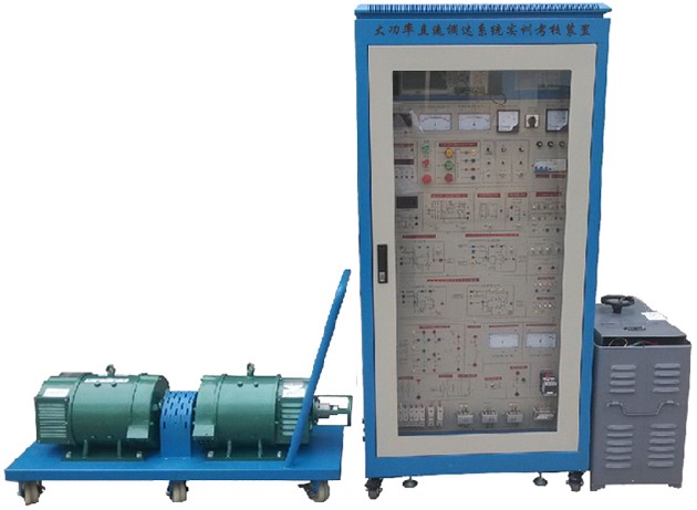 大功率直流调速系统实训考核装置,该设备能满足学校对技师和高级维修电工的培训及技能考核的需要,也可作为普通高校"电力电子技术"、"电力拖动自动控制系统"、"直流调速"等课程的实训。设备采用大功率晶闸管和2.2KW大功率直流机组,模拟工业现场,弥补一般教学设备采用小电机无法准确模拟中大功率电机转动惯量的缺点。可以完成带电流截止负反馈转速单闭环、电流单闭环和电压、电流双闭环调速实训,通过设置故障的方式,也可以完成自动化方面的实训考核。