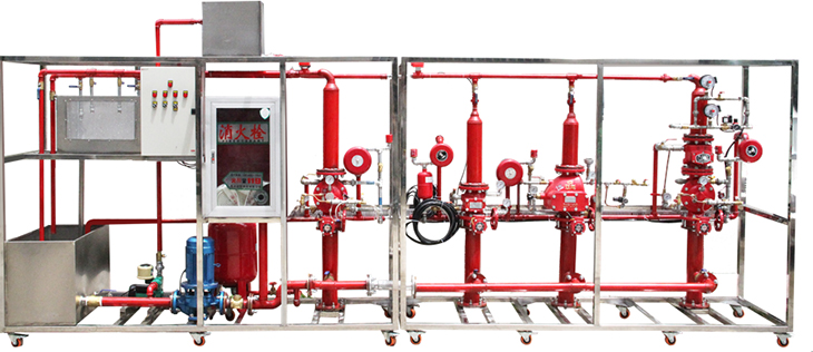 建筑消防系统实训装置分为自动喷水灭火系统、消火栓系统及消防报警联动控制中心两部分。