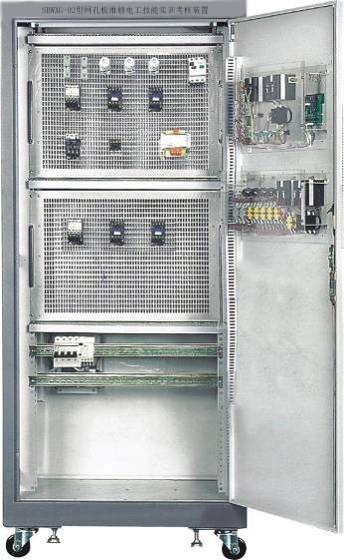 维修电工技能实训考核装置是按照劳动和社会保障部颁发的"工人等级标准"和"职业技能鉴定" 规范要求而设计的,它是集培训、理论、实际操作和考核鉴定为一体的多功能设备。该装置采用实际用的配电柜为主体,合理利用柜体的双面空间,进行合理布局,选用可靠的元器件。可以完成科目有《工厂电气控制》、《电机拖动》、《仪表照明电路》等科目的操作实训,并右满足维修电工的初、中、高级技能实训考核内容要求。